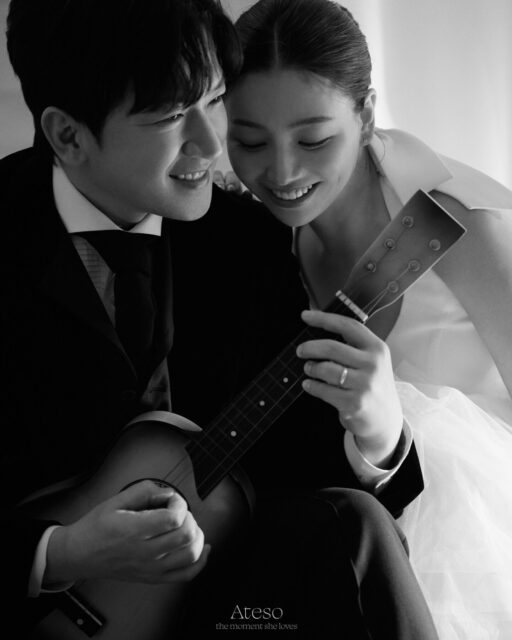 二人は結婚式を控えて撮影したウェディングフォトを公開し、注目を集めた。イ・ミヌはブラックスーツ、イ・アミは純白のオフショルダードレスを着用。二人は頭を近づけて温かく微笑んだ。