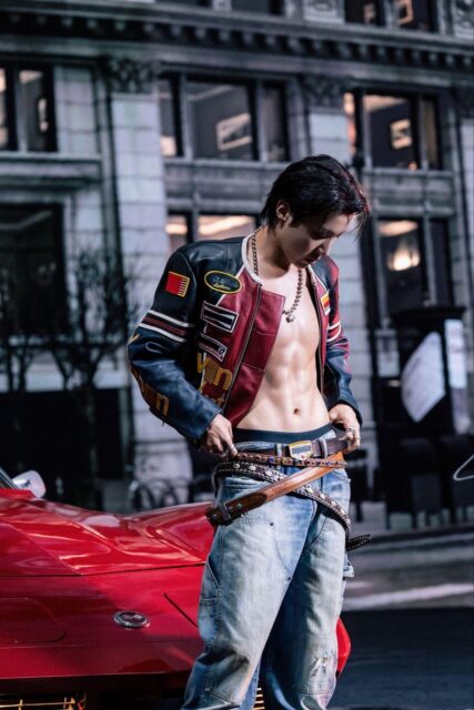 J-ホープの "Killin' It Girl "のミュージックビデオで初めて登場し、引き締まった腹筋の上にジャケットを羽織った。